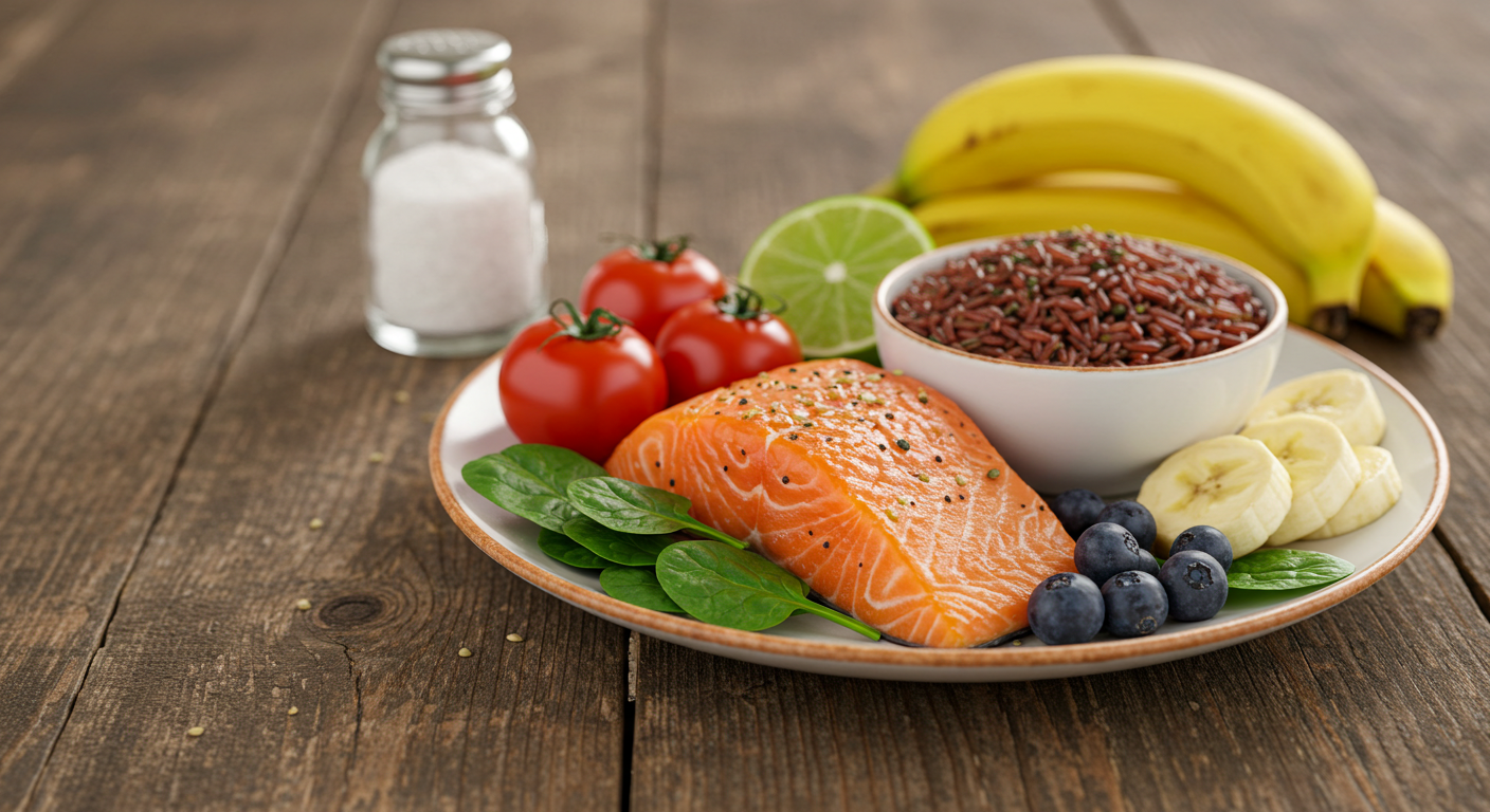 - 칼륨 풍부한 채소/과일 섭취 (시금치, 바나나)