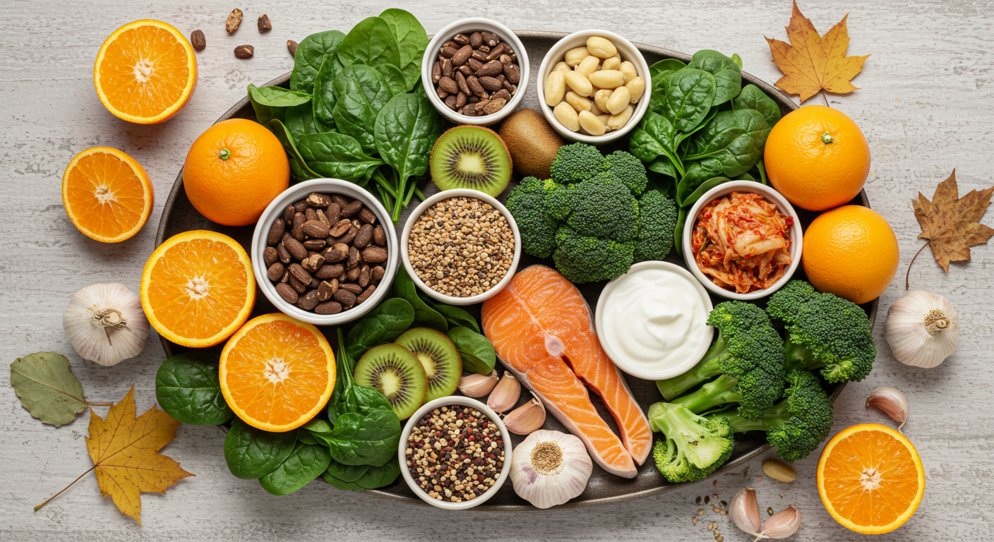 - 면역력 강화 음식: 비타민 C가 풍부한 감귤류 과일, 장 건강에 좋은 발효 식품, 항균 작용을 하는 마늘, 오메가-3가 풍부한 등푸른 생선, 항산화 물질이 가득한 브로콜리 등을 꾸준히 섭취하는 것이 중요합니다.