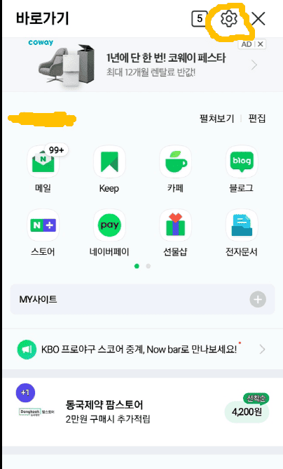 - 톱니바퀴(설정) 아이콘을 누릅니다.
