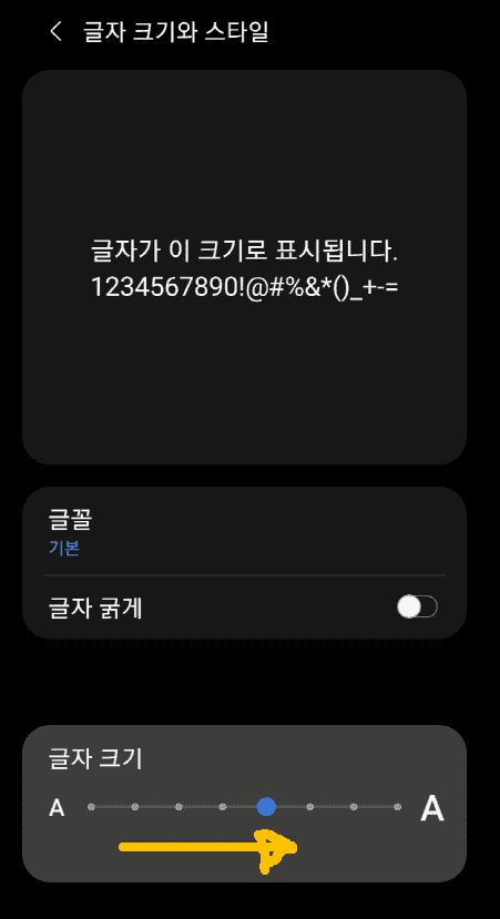 - 슬라이더를 오른쪽으로 밀어 글자를 키우면 끝!
